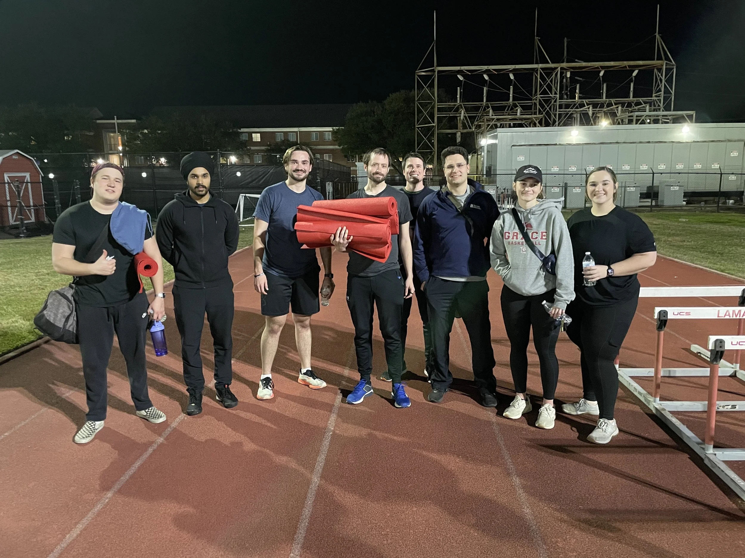 Every Thursday we meet, workout, and share a meal together. We host fun events, movie nights, and Bible studies that strengthen and grow our community and spiritual lives. Our goal is not to be an organization that goes with us when we leave. Our goal is to be an organization that puts God at the center of all we do. We desire to be a place where God can easily be found for those who are seeking Him.
