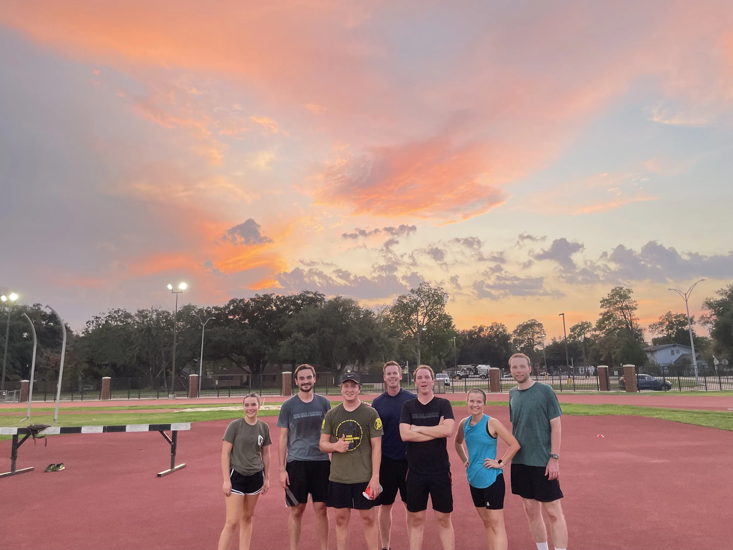 Gideon Crump, one of the founders of the organization, became a Christian around the same time he started long distance running. On the morning of his first marathon in Beaumont, Texas in 2014 he read from his daily devotional, My Utmost for His Highest by O. Chambers which quoted Romans 8:37. Through hours of running and prayer that verse about God’s love stuck with him and planted the seed of this organization. Being discipled by peers at his church, he decided he wanted to combine his love for The Lord and fitness so he started a prayer running group. However, this immediately failed due to both of those disciplines being difficult, especially in tandem. After some time and guidance from friends, he started a group fitness class on the local college campus as a way to spend time with fellow believers and invite others in to see Christ’s love.